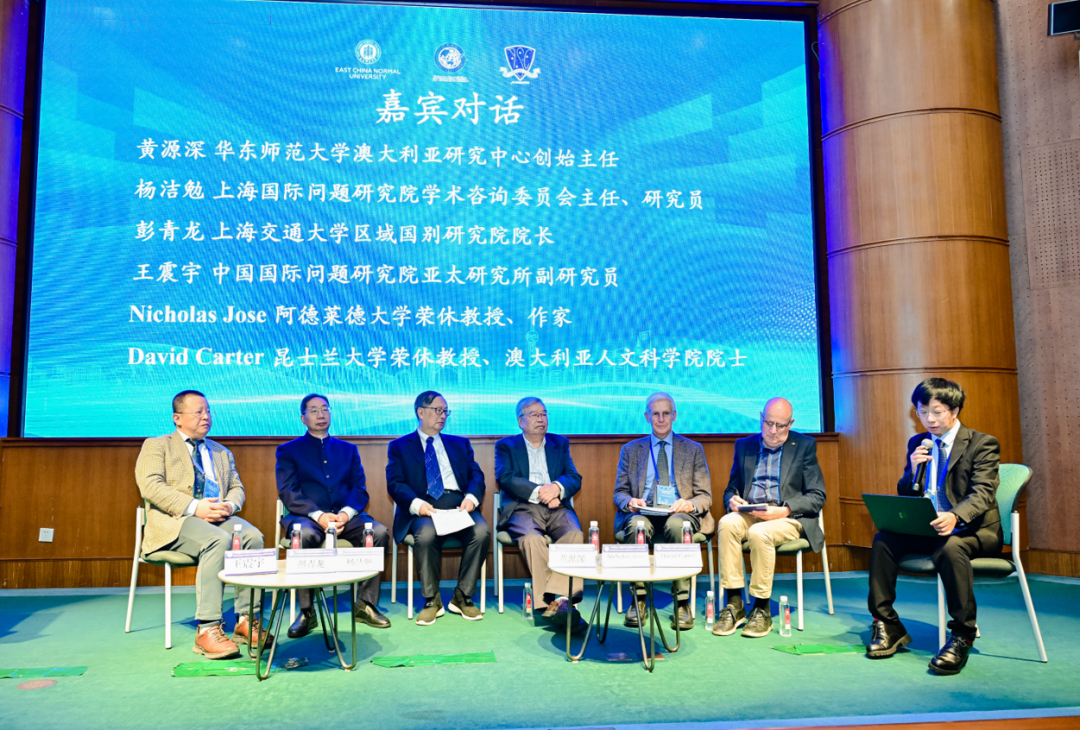 在嘉宾对话环节,澳研中心创始主任黄源深教授、上海国际问题研究院杨洁勉研究员、上海交通大学彭青龙院长、中国国际问题研究院王震宇副研究员,以及澳大利亚阿德莱德大学教授Nicholas Jose、昆士兰大学教授David Carter等中外专家共同交流。这场对话,既有对澳研学科发展历程的深度分析,也有对百年变局下澳研如何服务国家战略、青年澳研人才培养路径等议题的前沿探讨。知识与思想的碰撞不仅为在场师生带来启发,更凝聚了澳研需扎根现实、面向未来的深刻共识。