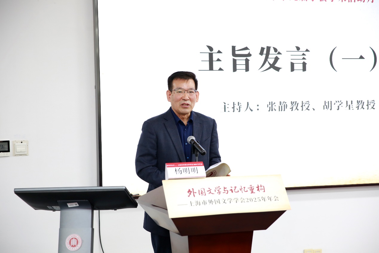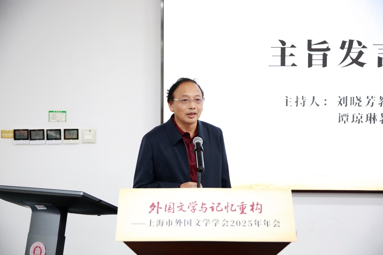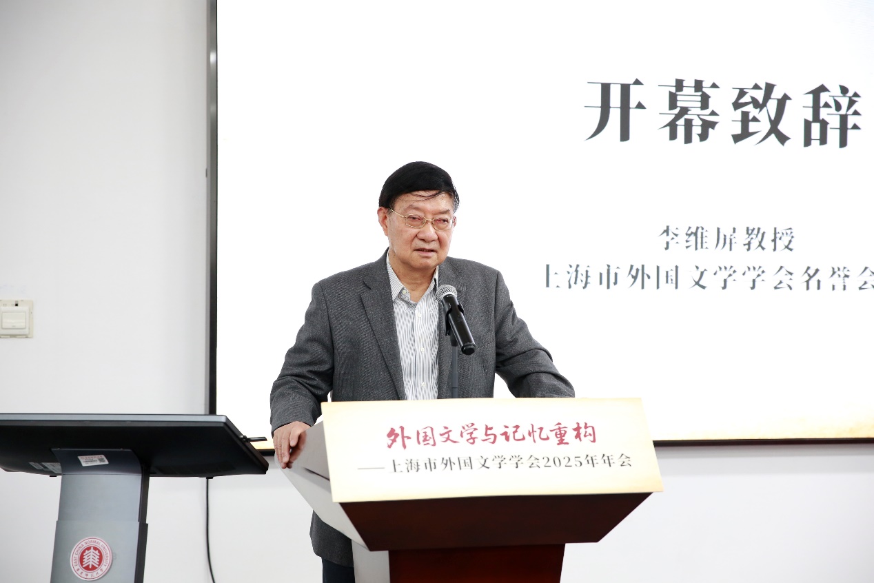 名誉会长李维屏教授在致辞中指出,记忆重构是文学最本质的功能,也是作者的使命,是外国文学和文化传播的重要前提。他强调,记忆的主要内容往往围绕社会重大事件展开。随着人工智能时代的到来,人类对记忆本身的认知正在发生变化。因此,他提醒学界不要只做审美研究,而应注重文学与历史、社会、思想的互动,并呼吁研究者们树立坚韧的主体意识,将中国视角作为立项的基本标准之一,在研究中应力求内容创新。