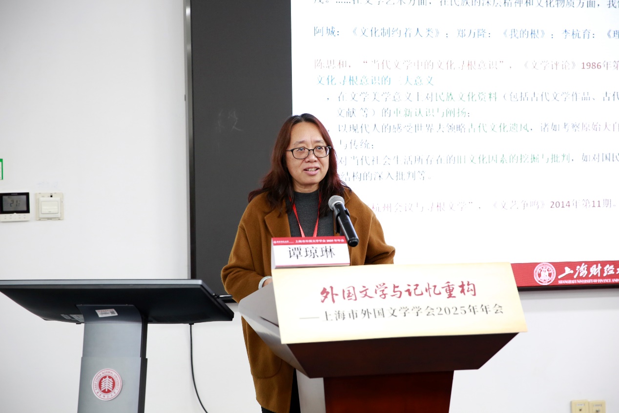 王弋璇秘书长总结了会议的两个关键词:精彩纷呈、温暖热烈。她认为本次会议具有高度开放性和互动性,见证了学术共同体的密切交流,并重点感谢上海市社联和两家出版社对本届年会的大力支持。最后,王弋璇秘书长概括说本次会议将鼓舞上海市外国文学界的学者们以本土性为根基、对话性为桥梁、创造性为引擎,共同书写“外国文学与记忆重构”研究的新篇章。