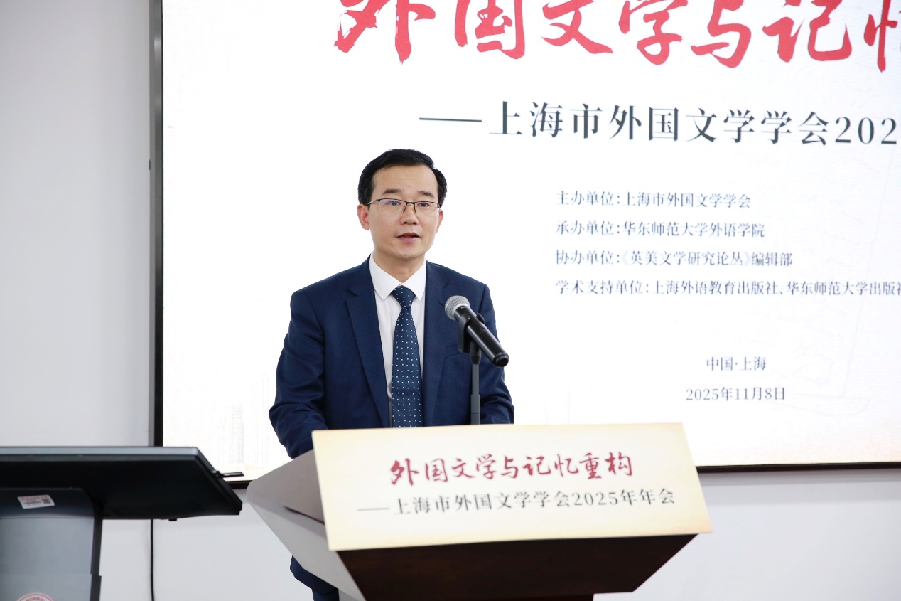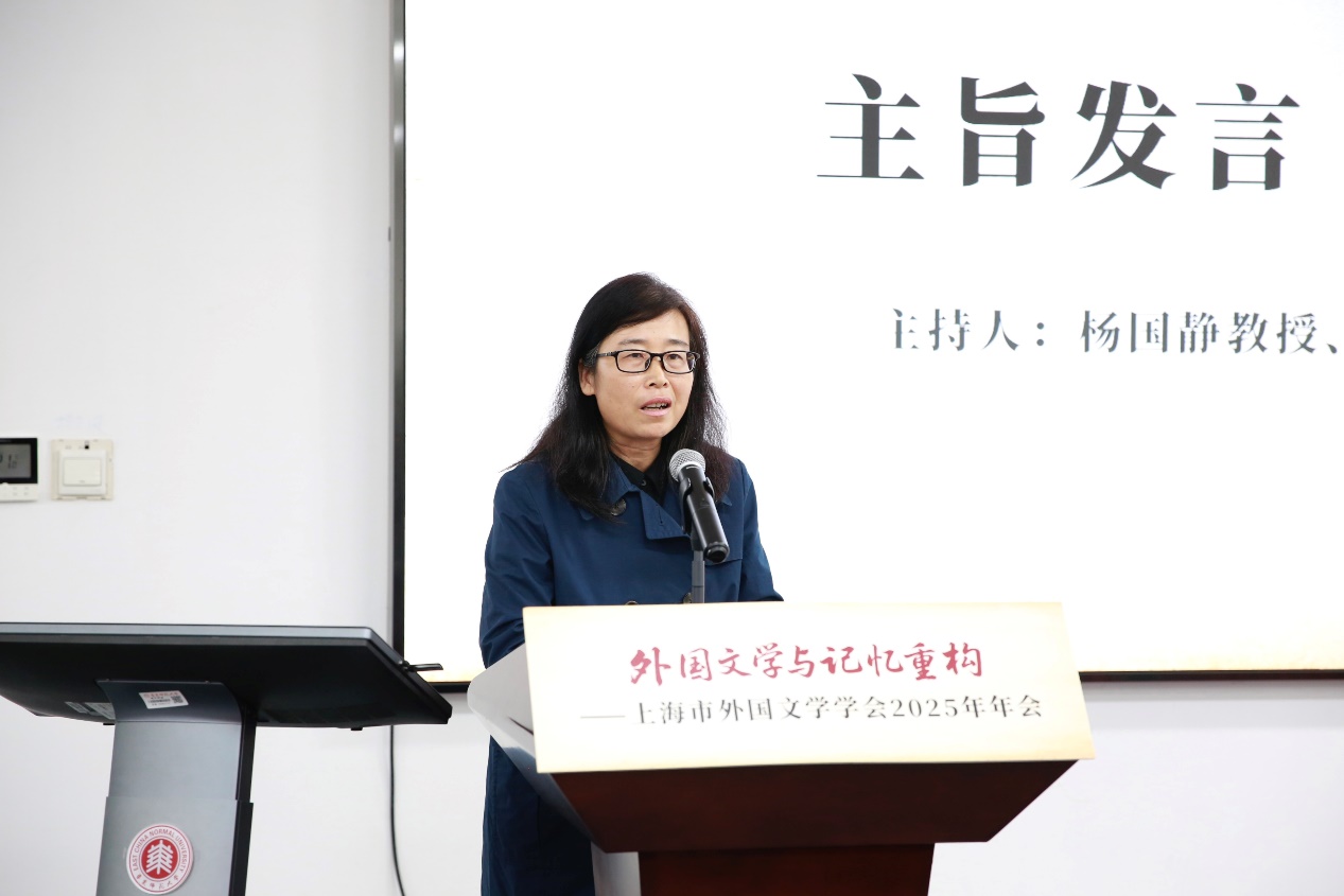 韩春红书记首先代表承办单位,对与会专家、学者和师生表示热烈的欢迎。韩书记特别以“三张名片”概括了学院外国文学研究的特色:一是以“丽娃河畔的翻译家群”为代表的深厚的外国文学翻译与研究传统;二是学院近年来积极打造的活跃而开放的多语种文学研究学术共同体。文学研究团队通过“大夏外国文学研究交锋论坛”“聚学讲坛”及“攀峰计划”沙龙等系列品牌活动,持续推动学术交流和创新;三是当下文学研究团队正着力推进的以“四个服务”为导向的文学研究转型,推动外国文学研究服务区域国别学建设、教育高质量发展、地方经济社会发展,以及学校新兴学科布局。她强调,在抗战胜利80周年的特殊历史节点,本次年会以“外国文学与记忆重构”为主题,无疑具有深远的意义。