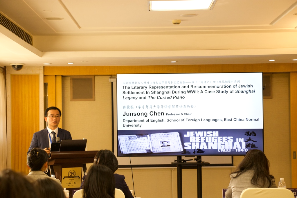 600cc全讯白菜网英语系陈俊松教授做了题为《二战欧洲犹太人避难上海的文学书写和记忆重构》的主旨发言。他首先回顾了历史上犹太人抵达上海的三次浪潮,以再现二战期间欧洲犹太人避难上海这段历史的两部小说《上海遗产》《魔咒钢琴》为研究对象,深入剖析文学在记忆重构中的作用以及和其他记忆媒介相比的独特价值。他指出,《上海遗产》讲述主人公玛雅借翻译母亲去世后留下的德文日记探寻母亲在上海避难的经历、实现母女和解、增强自身勇气的故事;《魔咒钢琴》以钢琴为线索串联跨世纪的爱情,凸显上海犹太难民与当地居民的互动情谊。陈俊松教授指出这类虚构的文学作品已成为保存犹太人避难上海这段经历、重构上海城市历史的记忆场。
